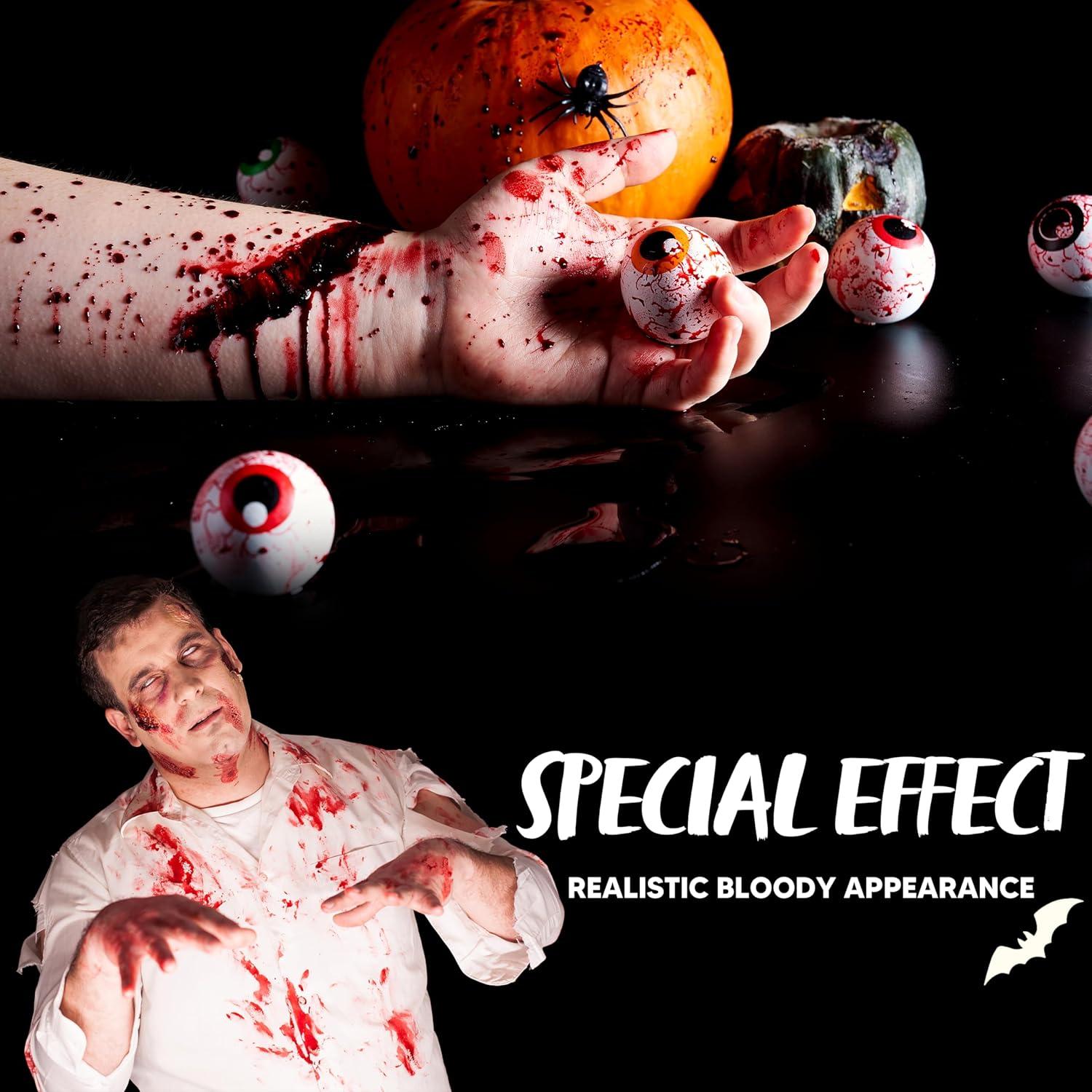 Realistic Appearance. Our Stage Fake Blood offers a realistic appearance that enhances the authenticity of your Halloween makeup. The blood replicates the texture, color, and consistency of real blood, adding a gruesome touch to your cosplay or special effects.