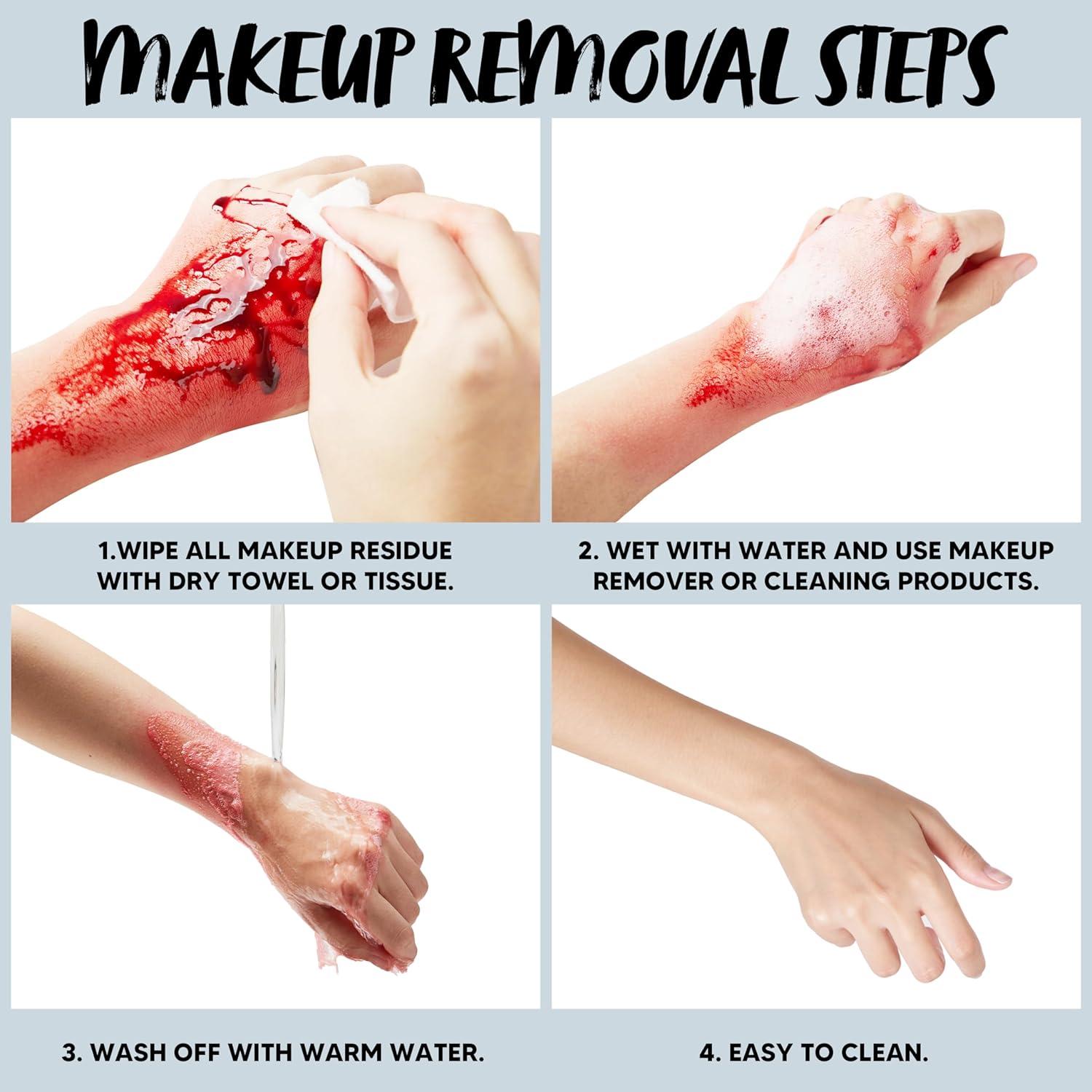 Easy To Use. With its smooth texture and convenient packaging, you can easily control blood volume for precise application. Whether you're creating cuts, splatters, or other haunting effects, this product lets you turn your Halloween spooky look into a standout. A patch test is recommended before use.