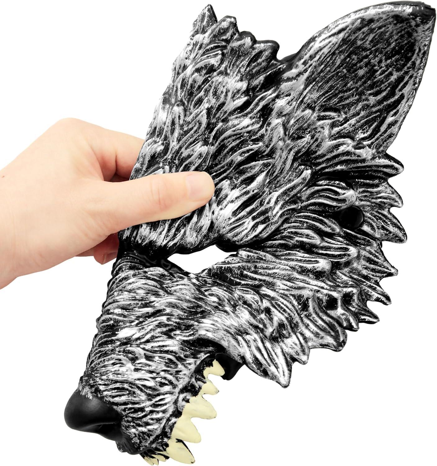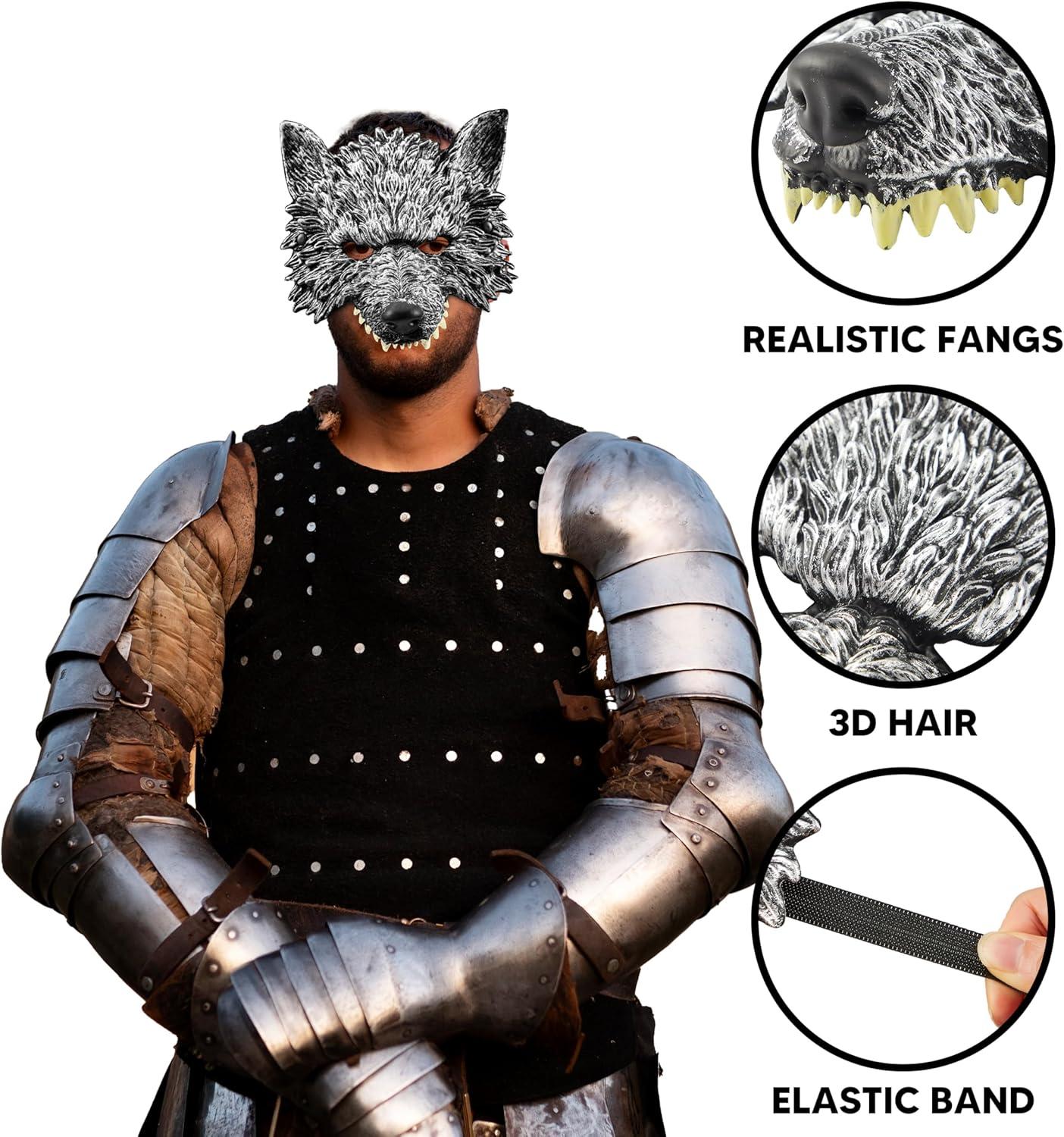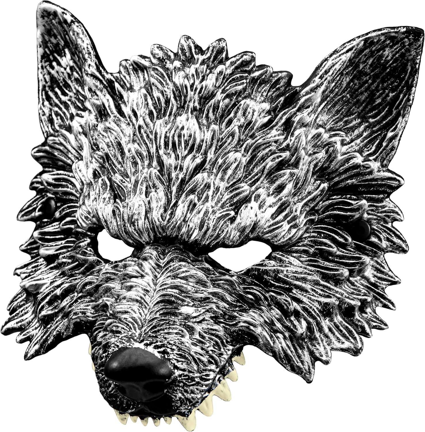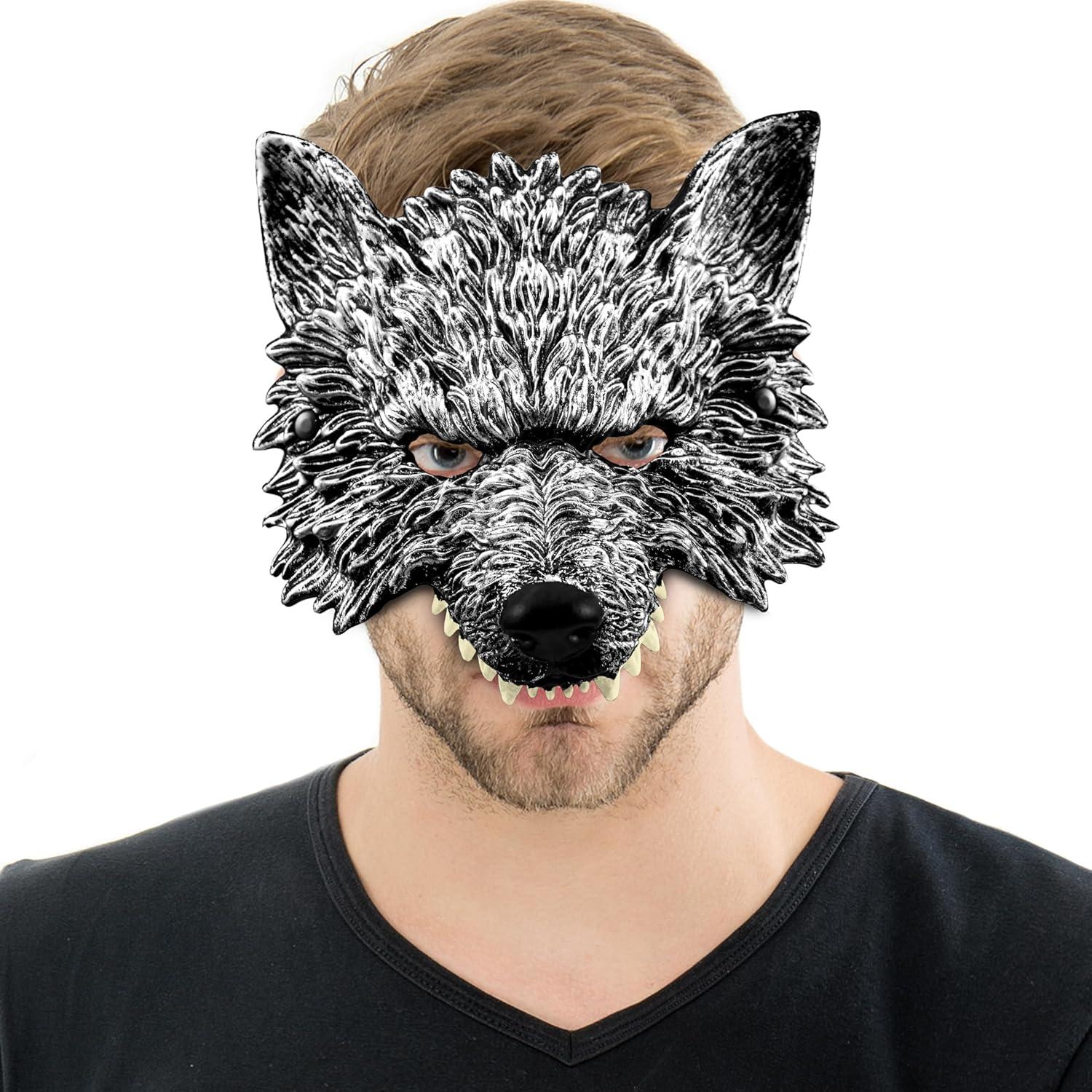 Spooktacular Creations Halloween Wolf Mask, Scary Animal Half Face Werewolf Masquerade Mask for Adult Women Men Halloween Cosplay Costume Accessories Party Dress Up