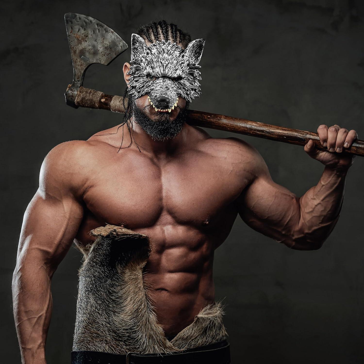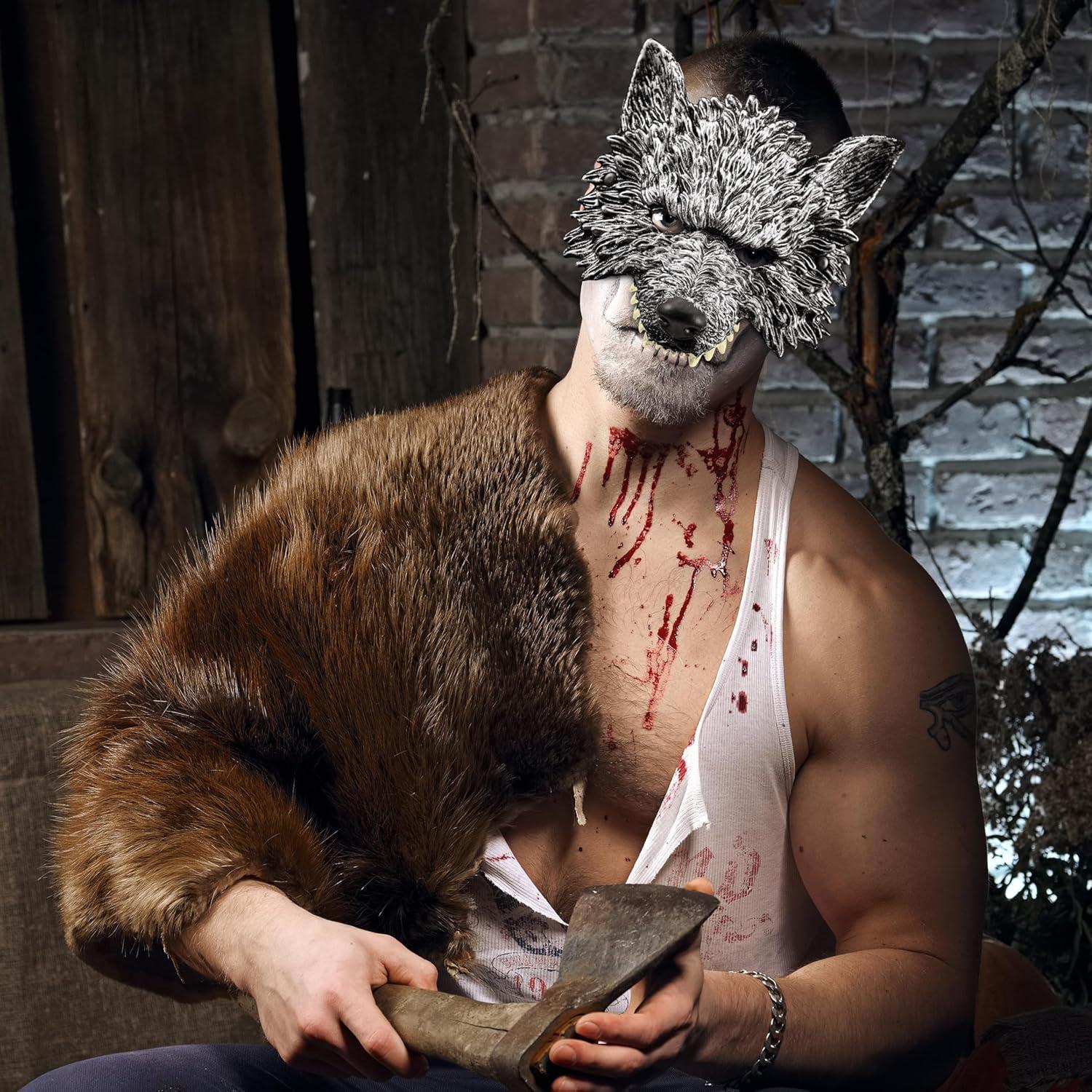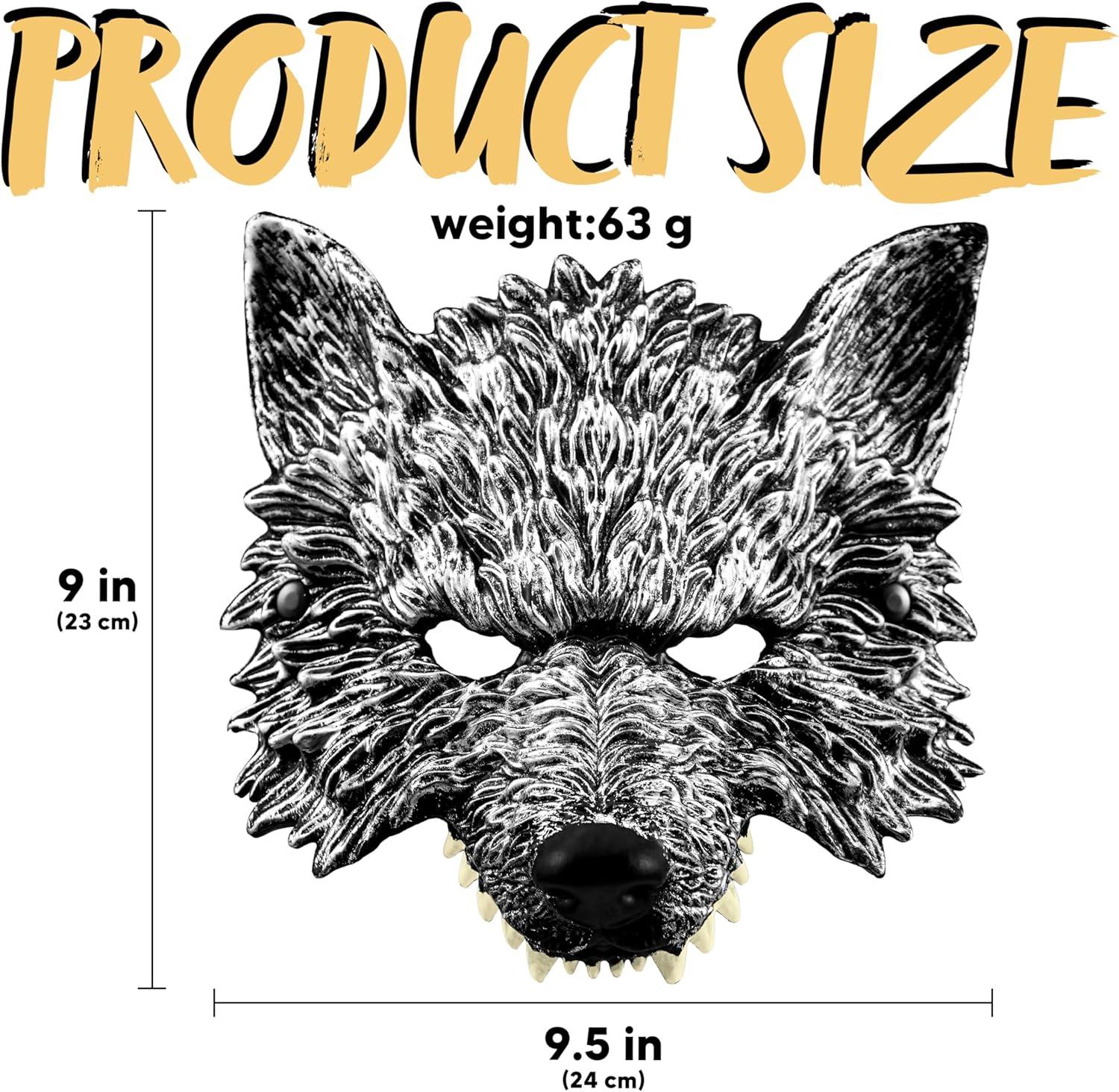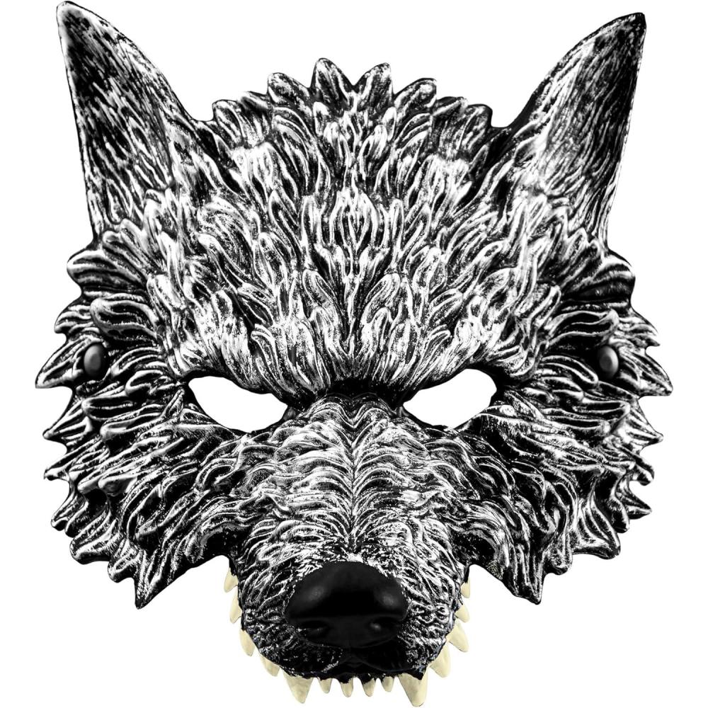 Spooktacular Creations Halloween Wolf Mask, Scary Animal Half Face Werewolf Masquerade Mask for Adult Women Men Halloween Cosplay Costume Accessories Party Dress Up